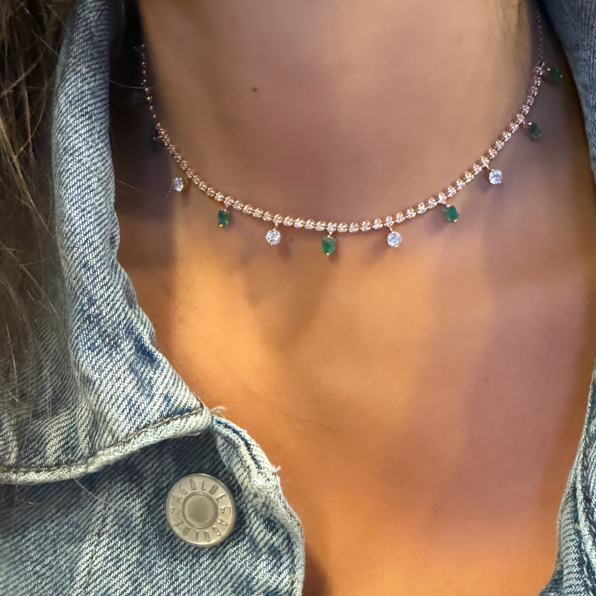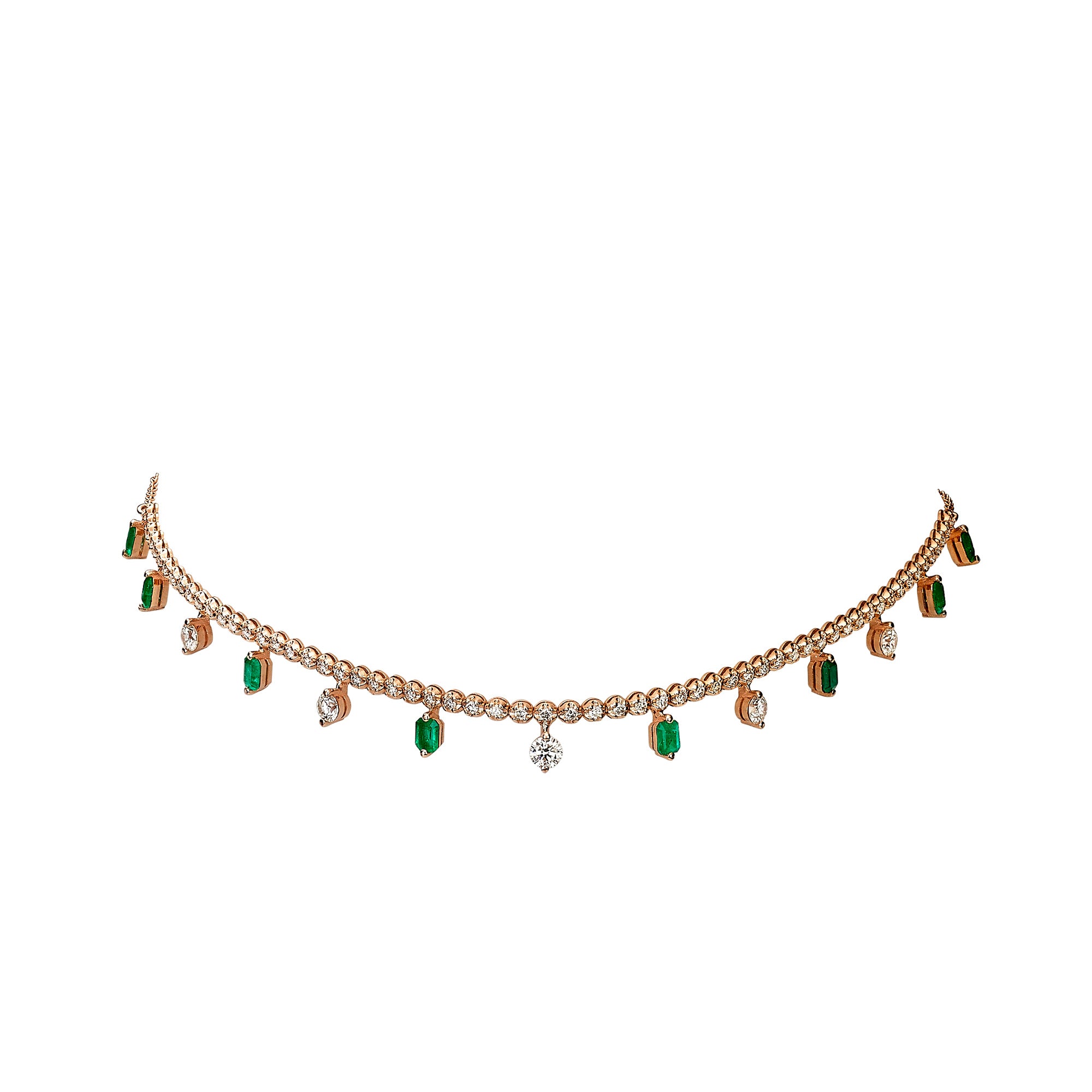 Diamond and emerald tennis choker