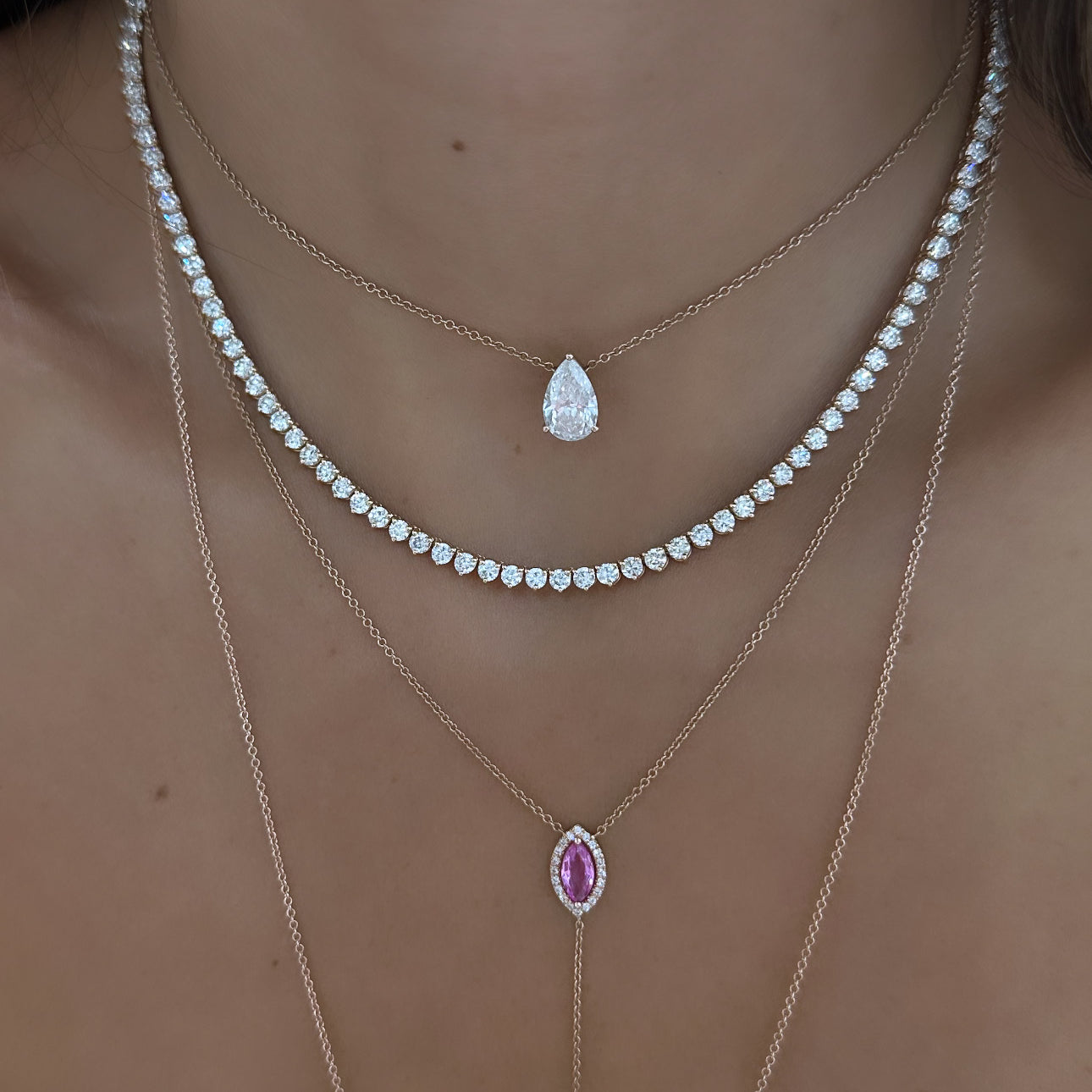 PEAR AND ROUND TENNIS CHOKER