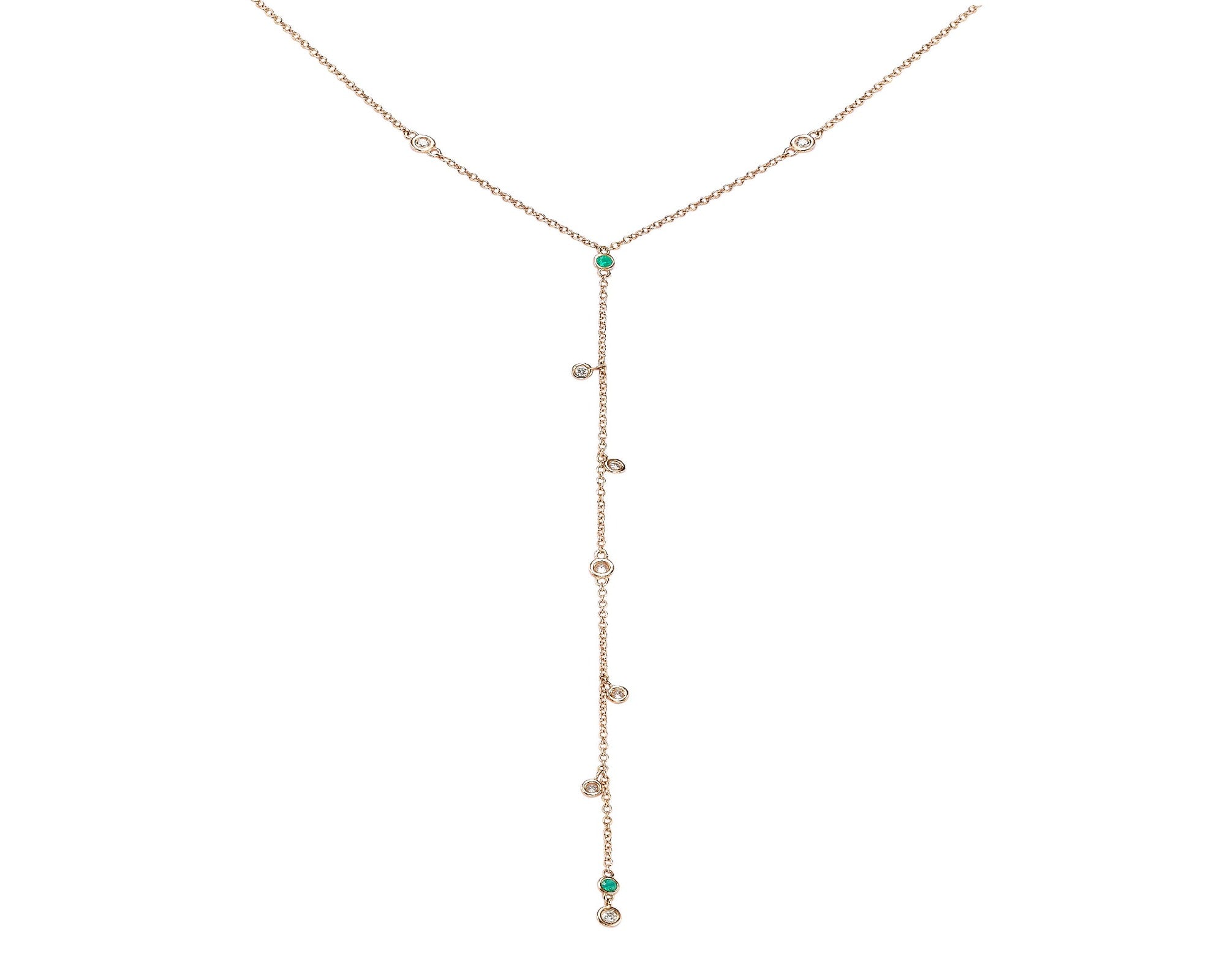 Bezel diamond & emerald inlaid tie necklace
